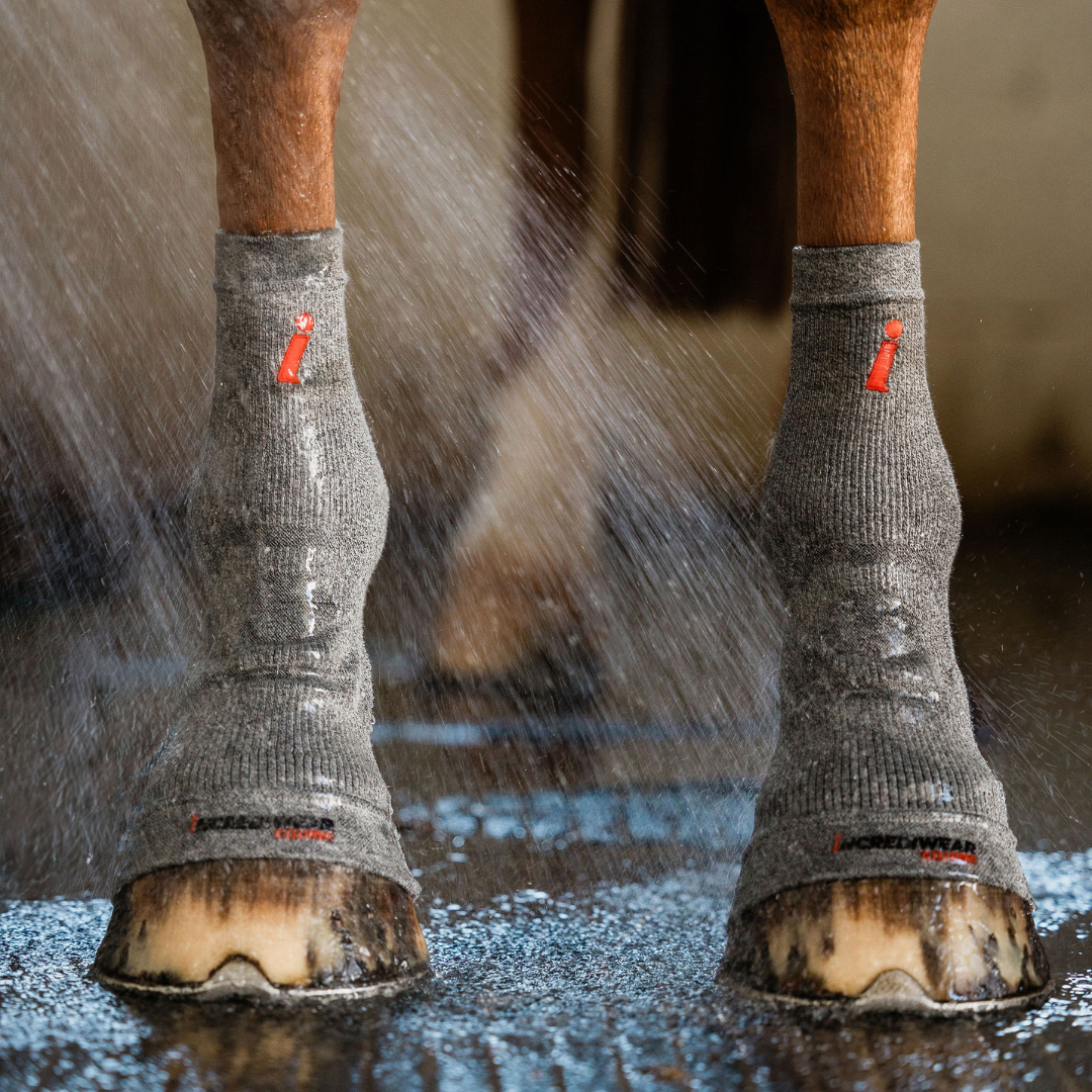 Incrediwear Equine Circulation Hoof Socks fit horse's legs comfortably and are created to accelerate recovery time and improve performance. Not based on compression. Based on technology that utilizes infrared waves to induce cellular vibration through energy transfer to intracellular water.